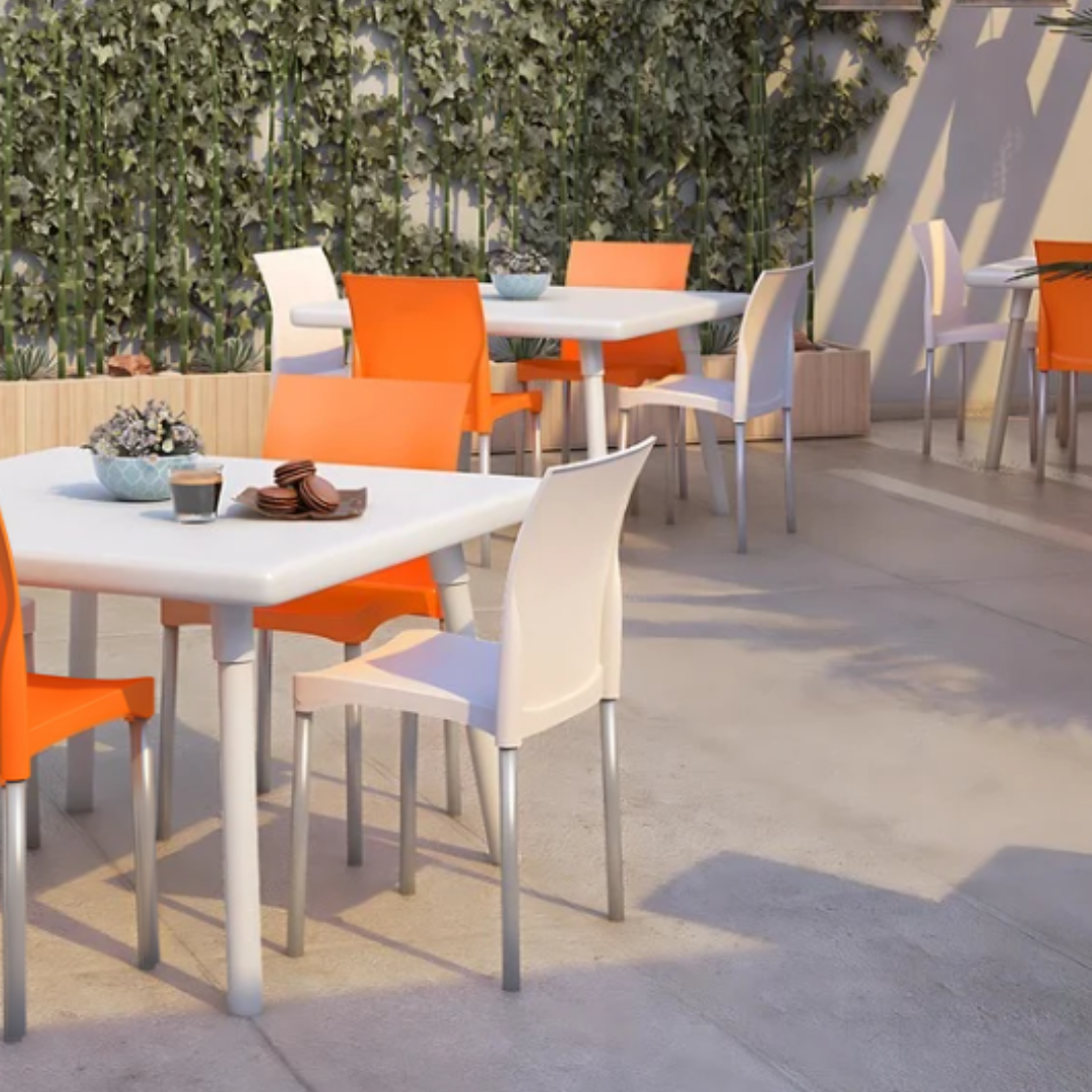 Asiento y respaldo en una sola pieza de polipropileno de alta resistencia, duradero y protegido contra rayos UV y ambiente salino.